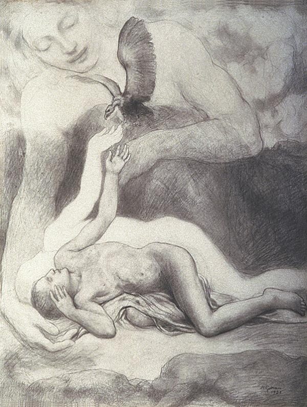 - The Dying Man and the Vulture from The Forerunner, 1920. Pencil on paper 22 x 16 3/4 inches. Telfair Museum of Art, Savannah, Georgia. Gift of Mary Haskell Minis, 1950.8.40.
