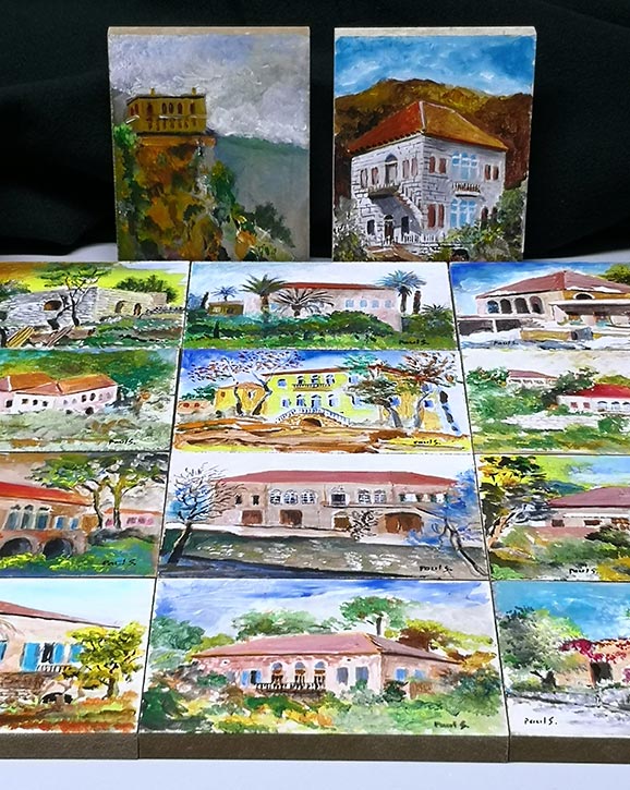 Houses of Lebanon – Handmade original art paintings in miniature (20x15x1.8 cms) painted on wood panels and signed by artist Paul Sleiman.