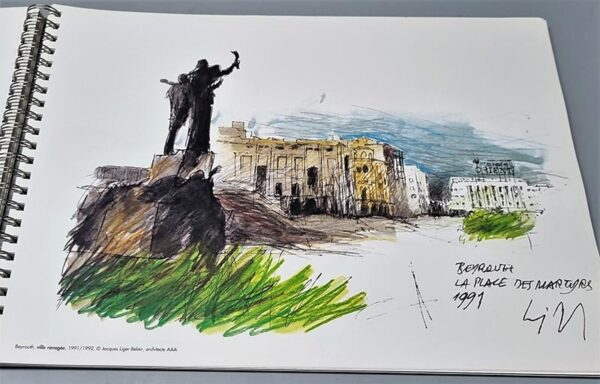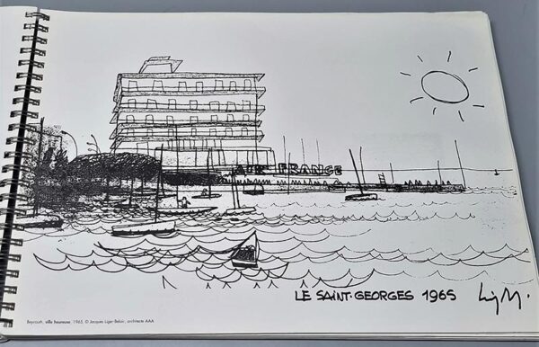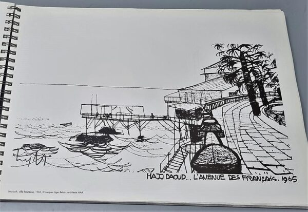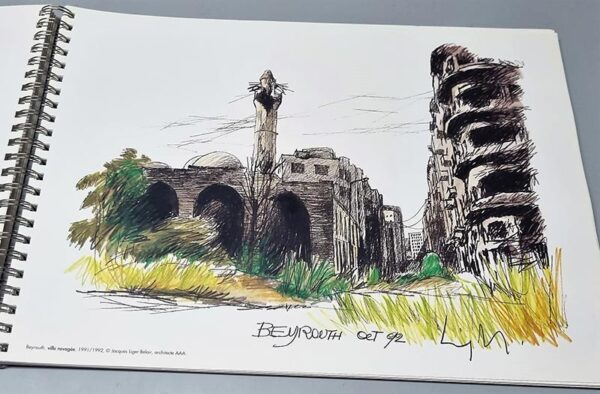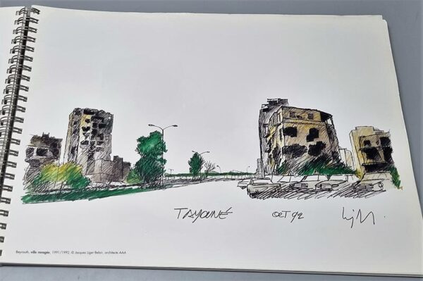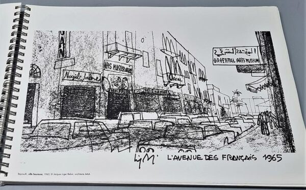 LebanonPostcard présente le livre (Classeur) 30×42 cm, 178 pages: Beyrouth 1965 – 2002 – Croquis de Jacques Liger-Belair – Architecte AAA. Correspondance d’Amin Maalouf – Postface de Ghassan Tueni – Textes de Jacques Liger-Belair – Le livre est utilisé mais en parfait état, signé par son auteur à Mr. Chucri Baroudi 2004 – Editions Dar An Nahar