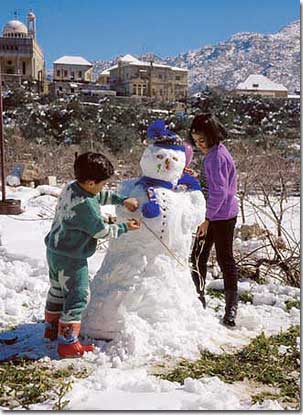 That winter Kfar Sama added up almost as many snowmen as inhabitants. And the snowballs, thrown by the children, whirled through the air dense as snowflakes.