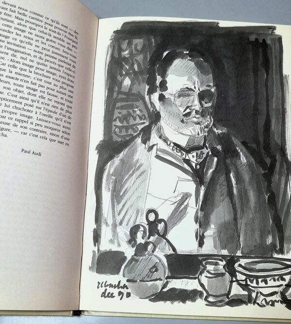Bien que la Banque Audi ait toujours exprimé son amour de l’art et des choses belles- soit en favorisant la constitution de collections (allant de la peinture classique européenne à l’art contemporain), soit en s’attachant à défendre sans compromission les artistes auxquels elle croit, en en disposant les oeuvres dans ses locaux, ou en prenant directement part au mécénat d’entreprise, ce «livre d’artiste », qui n’est pas tout à fait un livre d’art, n’en est pas une commande. On lira plus loin comment ces «enluminures » ont vu le jour; et c’est bien après leur achèvement que, par le plus pur des hasards, j’en ai pris connaissance. C’est dire combien de scrupules j’aurais eu à présenter ce travail d’Amine El Bacha, si cette joie ne m’avait été offerte par le rôle que j’ai été alors amené à tenir. Sur la base d’une telle production, une amie commune nous a présentés l’un à l’autre, et cette rencontre a donné lieu à une amitié que je me flatte ici de servir de mon mieux. Nous avons conjointement eu l’idée de cette publication, que nous avons voulue surtout fidèle à la transparence des couleurs diluées et à la densité de leur support. Chemin faisant, nous y avons inclus une série de dessins et d’encres qui permettent non seulement d’apprécier d’autres facettes du talent de l’artiste, mais de jauger de la place que tiennent ses «enluminures » dans l’ensemble de son oeuvre sur papier.