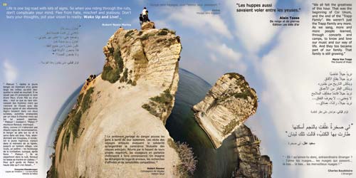 The book is presented as a “Journal” of inspirations, the booklet includes quotes from Lebanese writers and poets such as Alain Tasso, Salah Stétié, Venus Ghata-Khoury, as well as extracts of international writers selected to illustrate the imaginary journey through Libania.