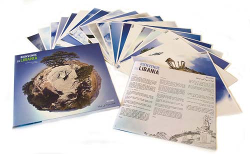 Book Welcome to Libania – Bienvenue en Libania. Hardcover 30 x 30 cm – 950 grams – 16 pages booklet. 20 planets super quality photographs. In English, French, and Arabic.