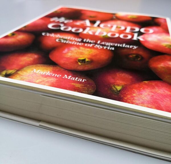 The Aleppo Cookbook: Celebrating the Legendary Cuisine of Syria by Marlene Matar, 26x20x3.9 cm hardcover – 353 pages.