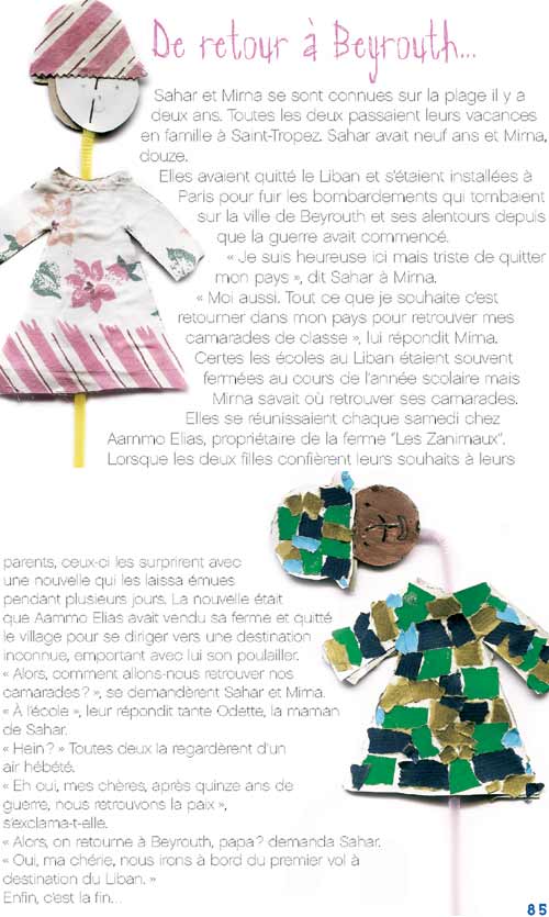 The book was the idea of Marie-Ange BOKASSA DEEB (alias Kiki), an artist painter who worked with children at the Children’s Cancer Center of Lebanon (CCCL) for four months during which time they made the handicrafts and drawings that appear as illustrations in the book. While the majority of the artwork is from patients at the CCCL, there were other contributions. Some children preferred to be authors/illustrators, while others simply concentrated on a story or poem that matched an existing artwork.