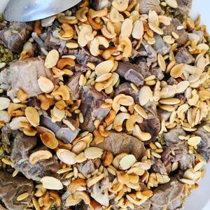 Ingredients: Wheat flour, oil, treacle of carob tree, rose water, sesame, bi-carbonate. Sfouf is one of the Lebanese cuisine’s famous confectionaries.