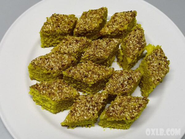 Ingredients: Wheat flour, fine wheat semolina, oil, anise powder, turmeric, sugar, yeast, water, sesame, and Tahini (sesame cream). Sfouf is one of the Lebanese cuisine’s famous confectionaries.