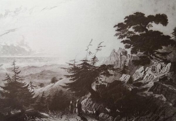 Collection of W.H. Bartlett realized between 1836 et 1846: Exterior of the great temple, Baalbeck – Sultan Hassan School 1840 – Besharai village, Bsharri 1838 – Turkish cemetery at Sidon by J.D. Redaway 1841 – Tyre by J.D. Woodward 1860 – Encampment at Ras El Ain near Baalbeck 1842 – The Mouth of Nahr El Kalb, Beirut 1840 – Port of Beirut 1838 – Tyre from the Isthmus, David Robert, 1839, 1844 – Cedars’ Forest at Barouk, 1836