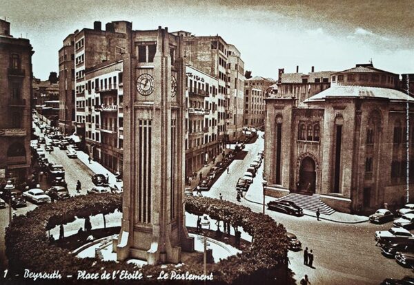 Beyrouth – Place des Canons, 1952 – Lebanese poster in Sepia (48 x 33 cm)