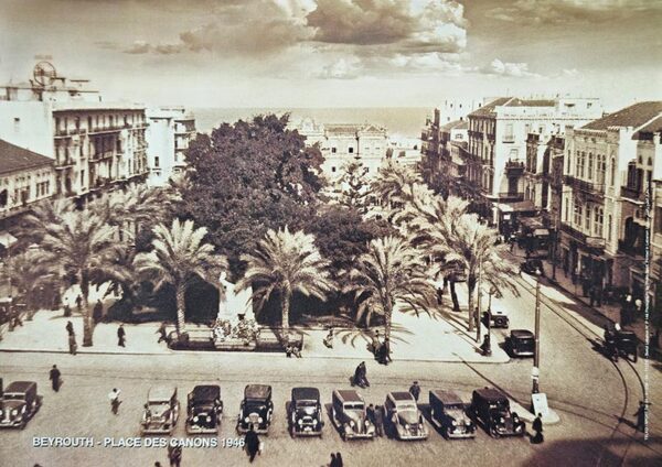 Beyrouth – Place des Canons, 1946 – Lebanese poster in Sepia (48 x 33 cm)