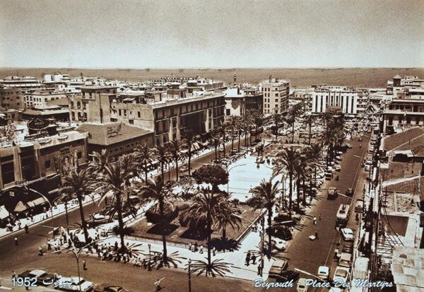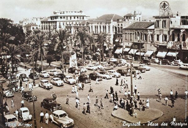 Beyrouth Place des Martyrs 1952, old photos Lebanon rare photography – Lebanese poster in Sepia (48 x 33 cm)