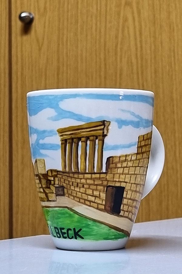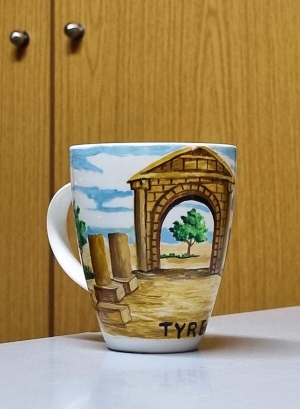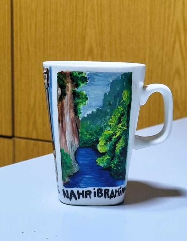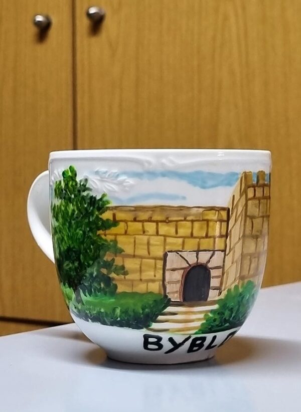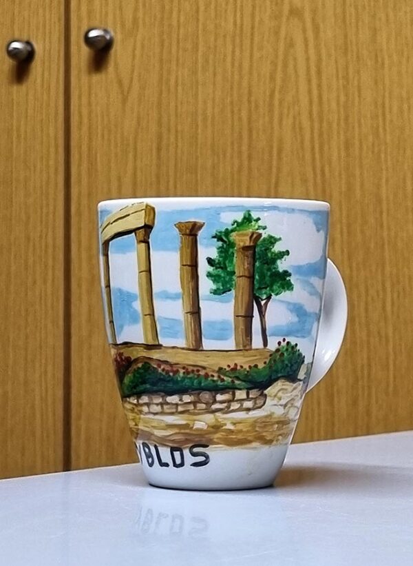 The handmade ceramic mugs are hand-painted and each cup has a unique colored drawing. Thus, it is the best souvenir gift you can have from Lebanon (Since the artwork is handmade, we have unique cups and will add later others… you can find paintings of Beirut, Beit Eddine, Byblos, Lebanon, Baalbeck, Tyre, Nahr Ibrahim).