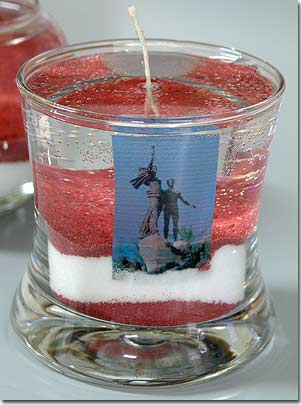 Gel Candles with the national colors and Cedar emblem. Each candle has been created with great care. Gel Candle souvenir (Martyrs) h. 8.5 cm – diam. 8.5 cm, Weight in box: 750 gr.