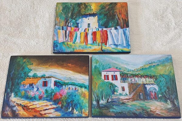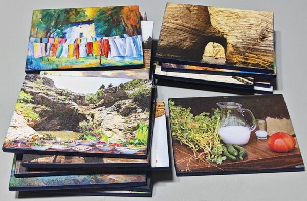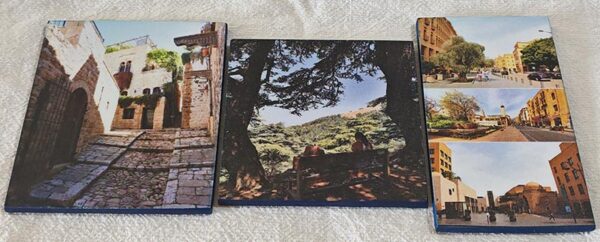 LebanonPostcard presents modern, stylish, coloured wood souvenir magnets from Lebanon. Every fridge deserves a story! The collection of magnets is handmade, and each magnet is done individually. The images show amazing views of Lebanon and paintings by artist painter Joseph Matar (About 9×7×0.4 cm and 8×7×0.4 cm): Each souvenir is unique (waxed and Laminated) and has its magnetic strip for attachment to any metal surface.