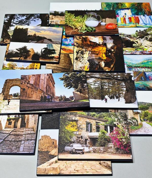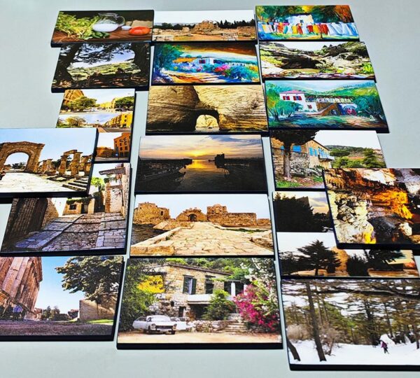 Collection of souvenir magnets from Lebanon – The images show amazing views of Lebanon and paintings by artist painter Joseph Matar