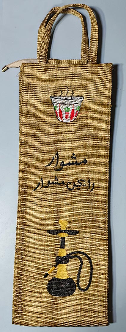 LebanonPostcard presents cute Hookah Bags (ShiSha Bag – Arguileh شنطة نارجيلة). The bags are heavy raw durable canvas with a 60cm height, they come with a pocket behind the bag with a zipper.