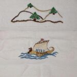 Large bath towels (100 percent cotton) embroidered with national colors and Lebanese emblem (Cedars and Phoenician ship). Each towel is 100 x 50 cm.