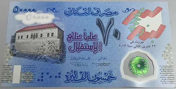 مصرف لبنان 70 عاما على الأستقلال – خمسون الف ليرة – بيروت في 22 تشرين الثاني سنة 2013