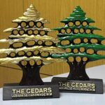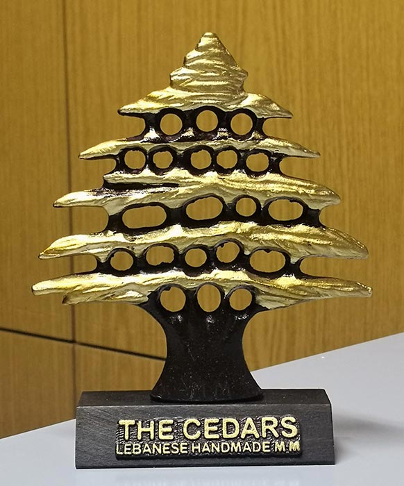 Choose gold or a green cedar metal stand for your desk and table… a reproduction of the Phoenician era, 14×11 cm – The cedars are sculpted on both sides recto/verso. The stands come with a beautiful box.