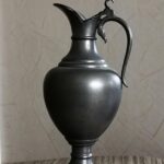 Unique rare handmade old charming decorative pewter jug cruet (23cm).