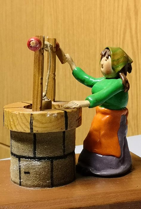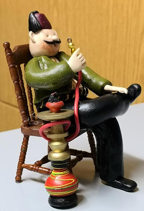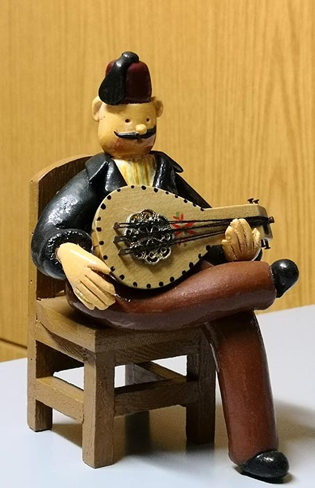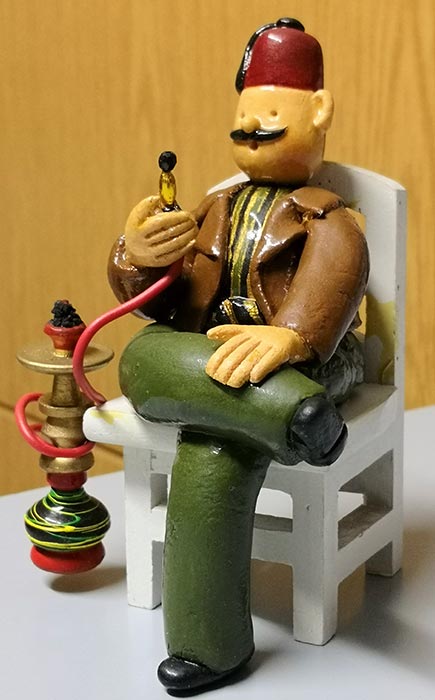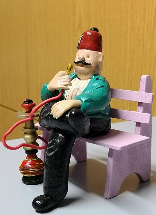 Charming decorative souvenirs hand-painted modelled statuettes (pâte à sel) of Lebanese characters, approximately 12 cm high (One doll is still available).