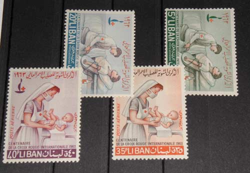 – Four stamps Centenaire de la Croix Rouge Internationale 1963