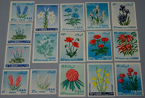 – 16 stamps, Flowers – Fleurs du Liban, timbres