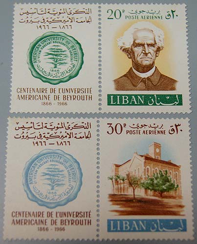 – Timbres de Beyrouth: Centenaire de l’université Americaine de Beyrouth 1866 – 1966
